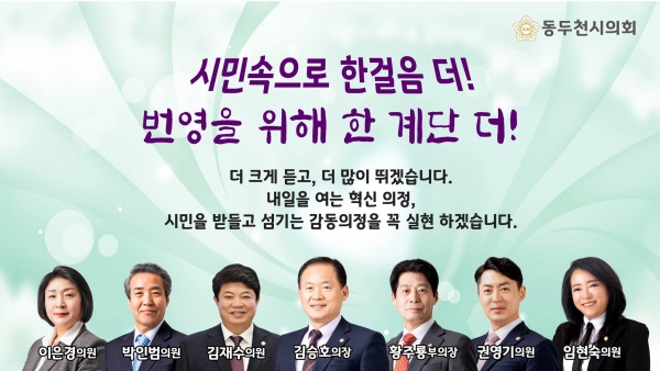 김승호 의장은 2024년 의정활동을 마무리하며 “지난 한 해 동안 시민 여러분과 함께 만들어온 성과는 동두천시의회의 소중한 자산”이라며 “앞으로도 시민의 목소리를 더욱 크게 듣고 행동으로 실천하며 지역 발전을 위해 최선을 다하겠다”고 말했다.