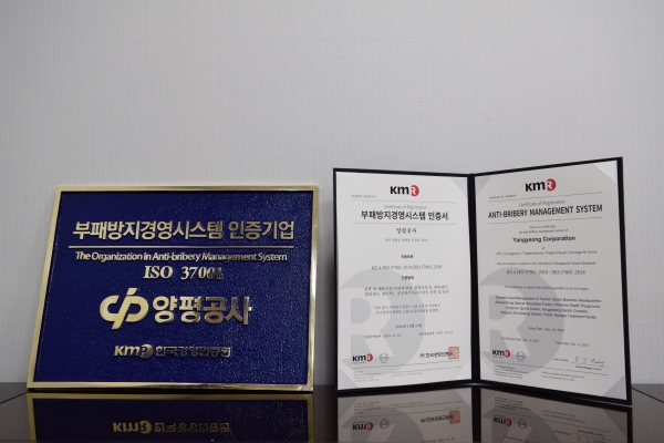 [금요저널] 양평공사는 지난 16일 한국경영인증원으로부터 국제표준화기구가 제정한 국제표준 부패방지경영시스템 인증을 획득했다고 밝혔다.