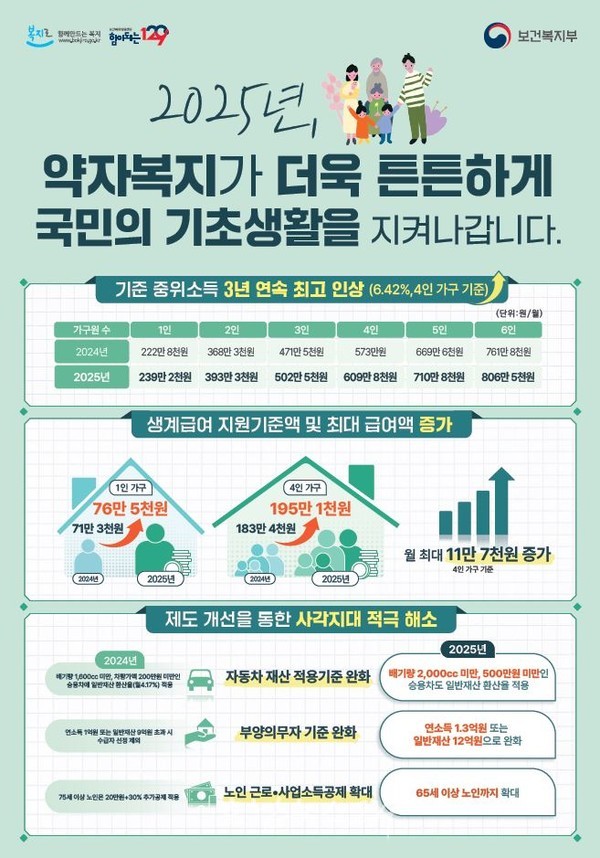 [금요저널] 2025년 기준중위소득 인상에 따라 기초생활보장수급자 선정기준이 대폭 완화되어 생계 곤란을 겪는 시민들이 보다 많은 혜택을 받을 수 있을 것으로 보인다.