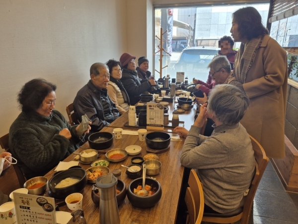 [금요저널] 구리시 황돈소머리국밥은 지난 15일 한겨울 한파 속에 가족 없이 외롭게 생활하시는 인창동 저소득 홀로 어르신 10명을 초대해 따뜻한 한 끼 식사를 무료로 제공하는 사랑의 식사대접 행사를 가졌다.