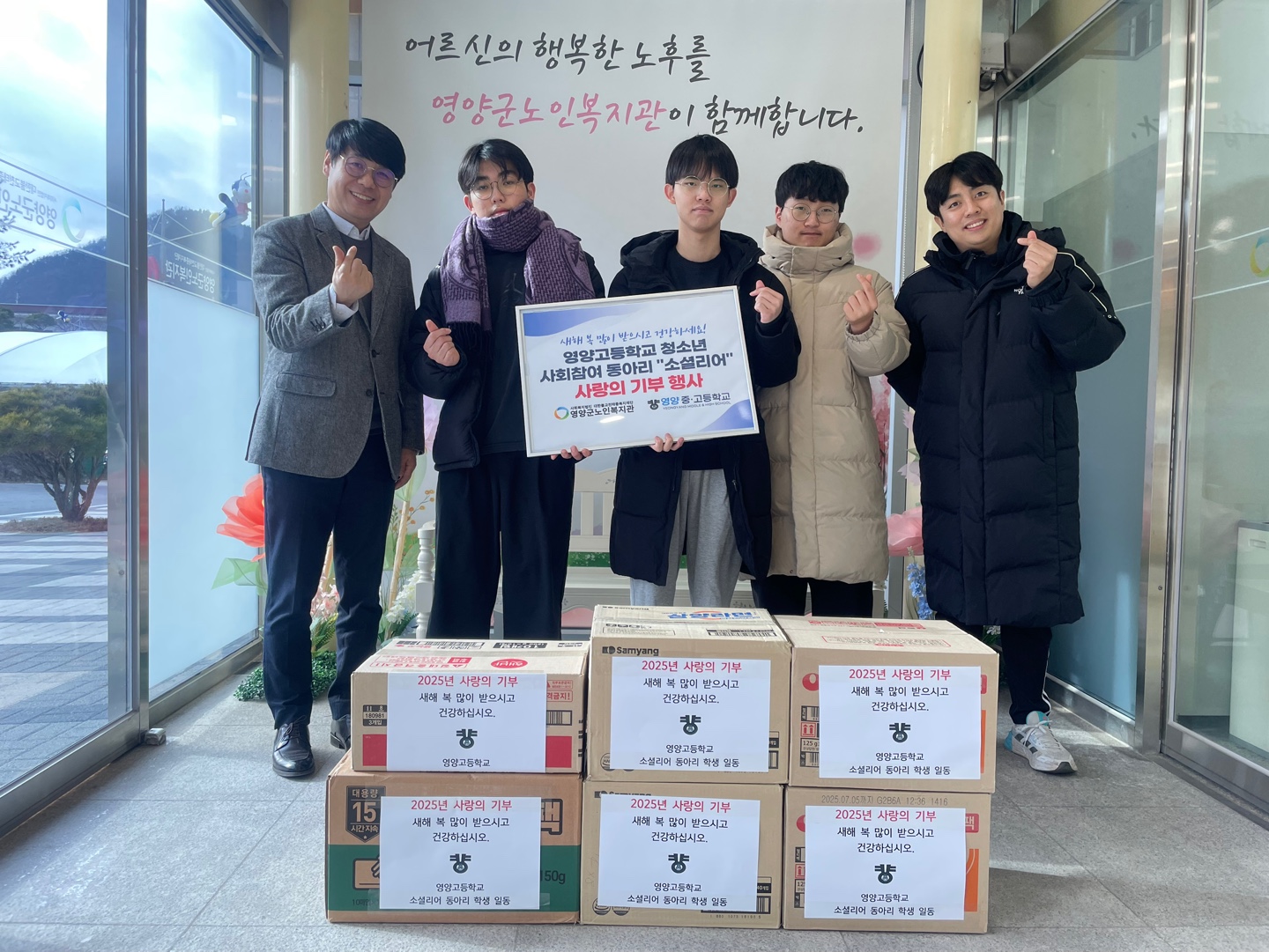 영양고등학교 학생회(교장 신현준)는 2024학년도 영맥 두드림 축제의 수익금 전체를 ‘국경없는 의사회’에 기부하고, 청소년 사회참여 동아리 ‘소셜리어’학생들이 제작한 기부 상자를 영양군노인복지관에 전달하였다.