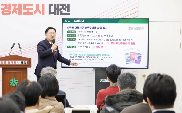 아울러 최근 온라인 소비문화 확대에 따라 라이브커머스 플랫폼 ‘라이브대전장터’를 통한 실시간 방송 판매를 확대하고 올해 안에 대형 e커머스에 대전특화 온라인 상시 홍보관을 개설해 지역 소상공인의 제품을 전국으로 홍보·판매 지원할 계획이다.