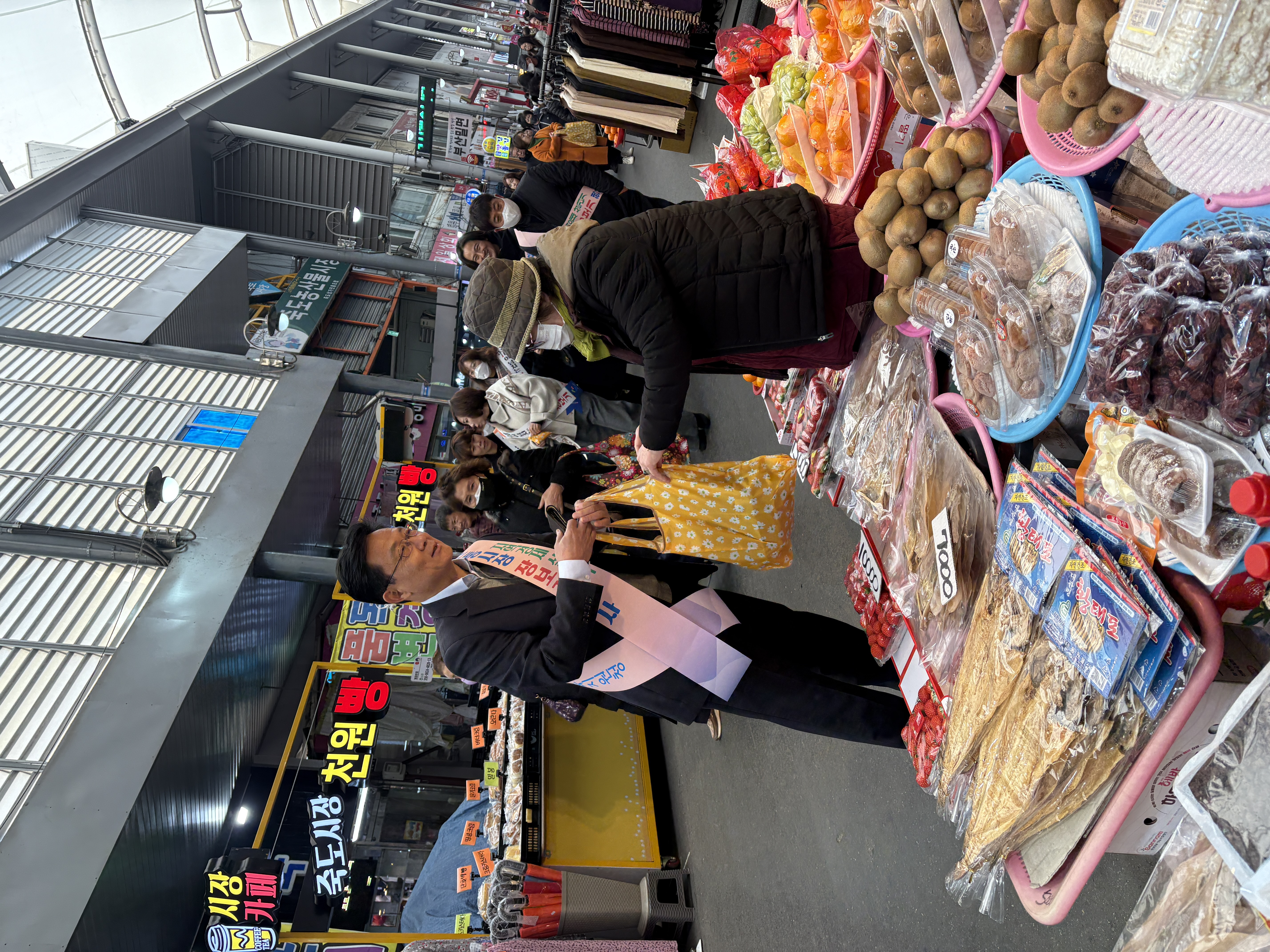 ☐ 최근 고물가와 경기 침체로 어려움을 겪고 있는 전통시장들을 돕기 위해 마련됐다. 최한용 교육장을 비롯한 직원들은 제수용품과 가족·친지에게 전할 명절 선물 등을 구입했다.
