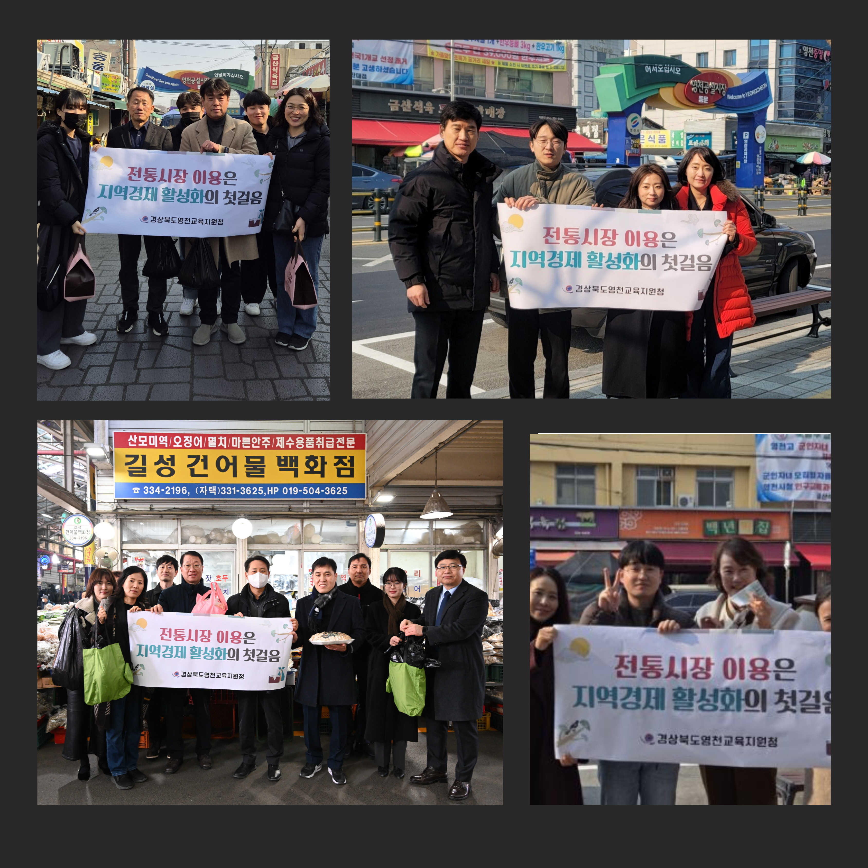 영천교육지원청 김희수 교육장은 “신선한 먹거리와 따뜻한 인정이 넘치는 전통시장이 활기를 찾아 지역경제가 활성화되길 바라고, 앞으로도 지역 공동체의 일원으로써 작게나마 도움이 되고자 노력하겠다.”고 밝혔다.