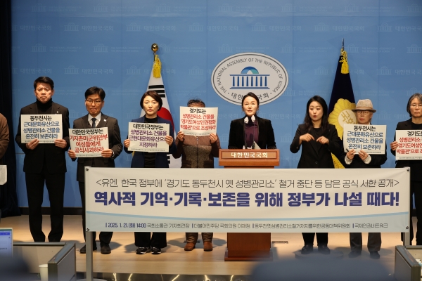 동두천옛성병관리소철거지지를위한공동대책위원회 , 국제인권네트워크와 함께한 이 기자회견에 따르면 작년 9 월 기지촌 미군 위안부 피해자 및 시민사회가 성병관리소 철거와 관련해 UN 인권이사회에 긴급 진정을 제출했고 이후 11 월 , 3 인의 유엔 특별보고관은 ‘ 공동혐의서한 ’ 을 통해 한국 정부를 상대로 “ 중대한 인권침해에 관한 집단적 기억 보존을 보장할 국가의 의무 ” 와 모든 정부기관은 “‘ 성폭력 및 젠더 기반 폭력을 포함한 중대한 인권 침해에 대한 추모 장소의 역사적 보존 의무 ’ 를 포함한 인권 보호 의무를 준수 ” 해야 하며 , 이를 준수하지 않을 경우 “ 대한민국의 책임이 발생할 수 있다” 는 점을 지적했다.