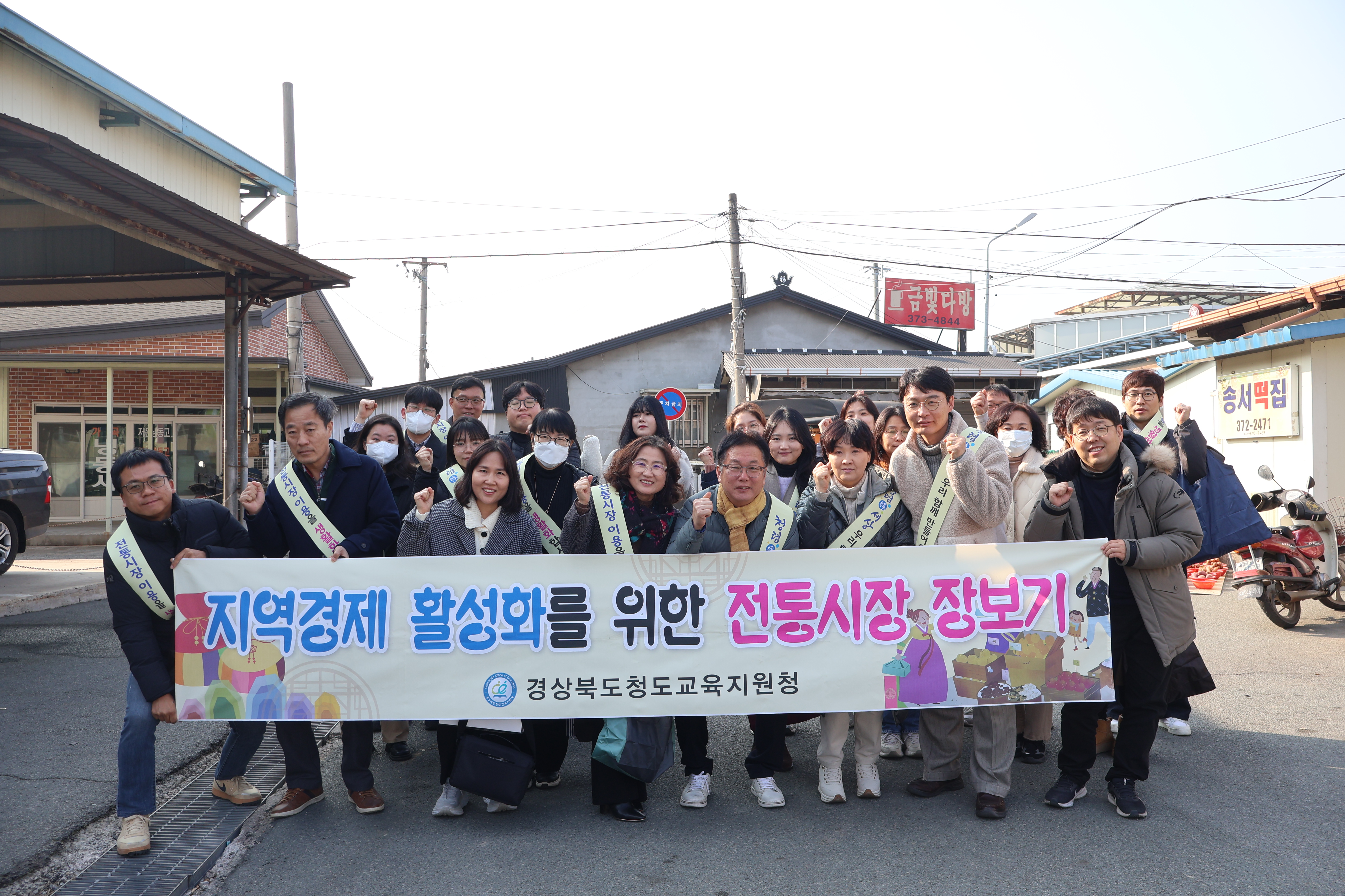경상북도청도교육지원청(교육장 이시균)은 설 명절을 맞이하여 21일(화) 풍각시장을 찾아‘전통시장 장보기 행사’와 ‘청렴 홍보 캠페인’을 개최하였다.
