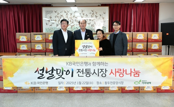 [금요저널] 사단법인 기아대책은 KB국민은행 북부3지역본부와 함께 22일 지역 경제 활성화와 나눔 문화 확산을 위해 동두천 중앙 전통시장 사랑 나눔 행사와 전달식을 진행했다.