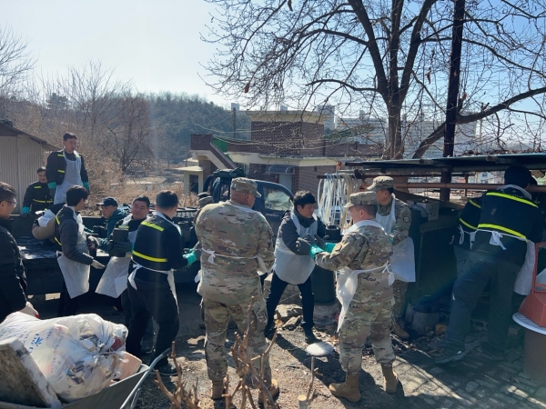 [금요저널] 동두천시 생연1동 행정복지센터는 지난 23일 주한 물자지원사령부 및 미8군지원단과 함께 관내 취약계층 3가구를 대상으로 연탄 나눔 봉사활동을 진행했다.
