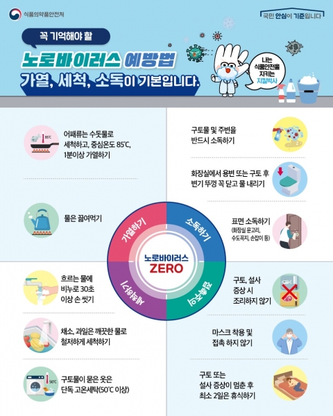 노로바이러스는 1월부터 3월 사이에 가장 많이 발생하는 식중독으로 감염자와의 접촉, 분변 및 구토물, 오염된 물이나 음식물로 전파된다.