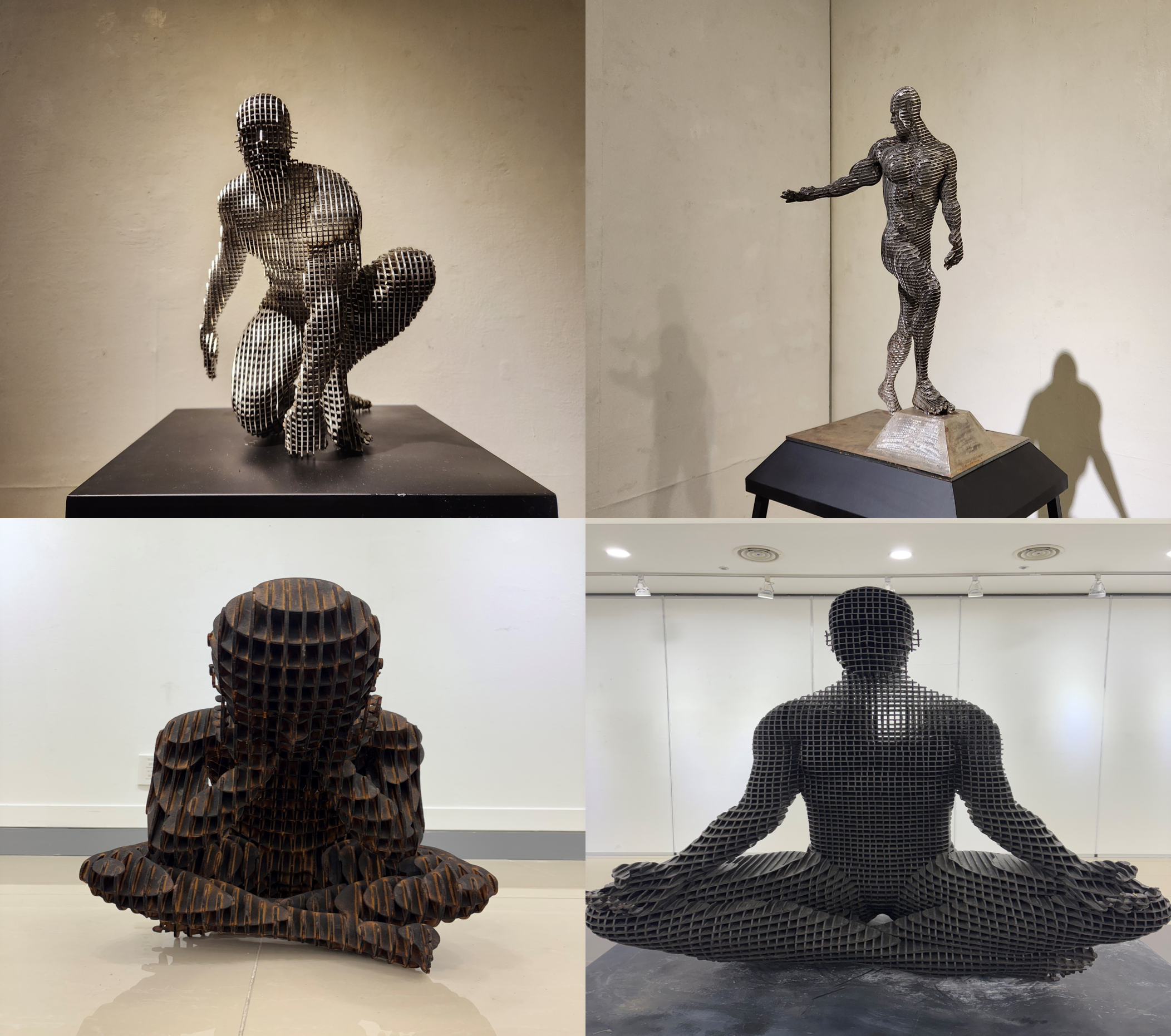 작품 ‘힘을 다해 일어서는 몸’, ‘손 내미는 사람’ 등 스테인리스와 자작나무로 완성된 조각 작품 10점은 인체 형상이 머금고 있는 미학적 요소와 관람객 시선에 따라 다양한 구조적인 아름다움을 발견할 수 있다.
