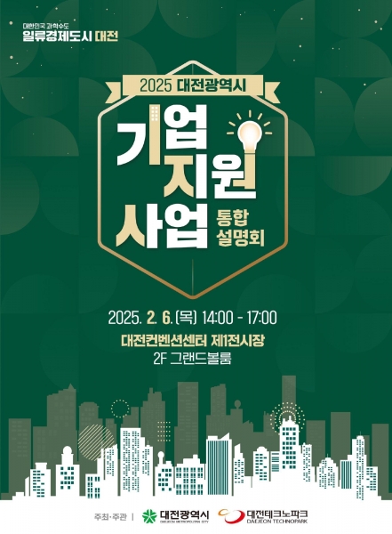 [금요저널] 대전시는 오는 6일 오후 2시부터 대전컨벤션센터 2층 그랜드볼룸에서 ‘2025 대전시 기업지원사업 통합 설명회’를 개최한다.