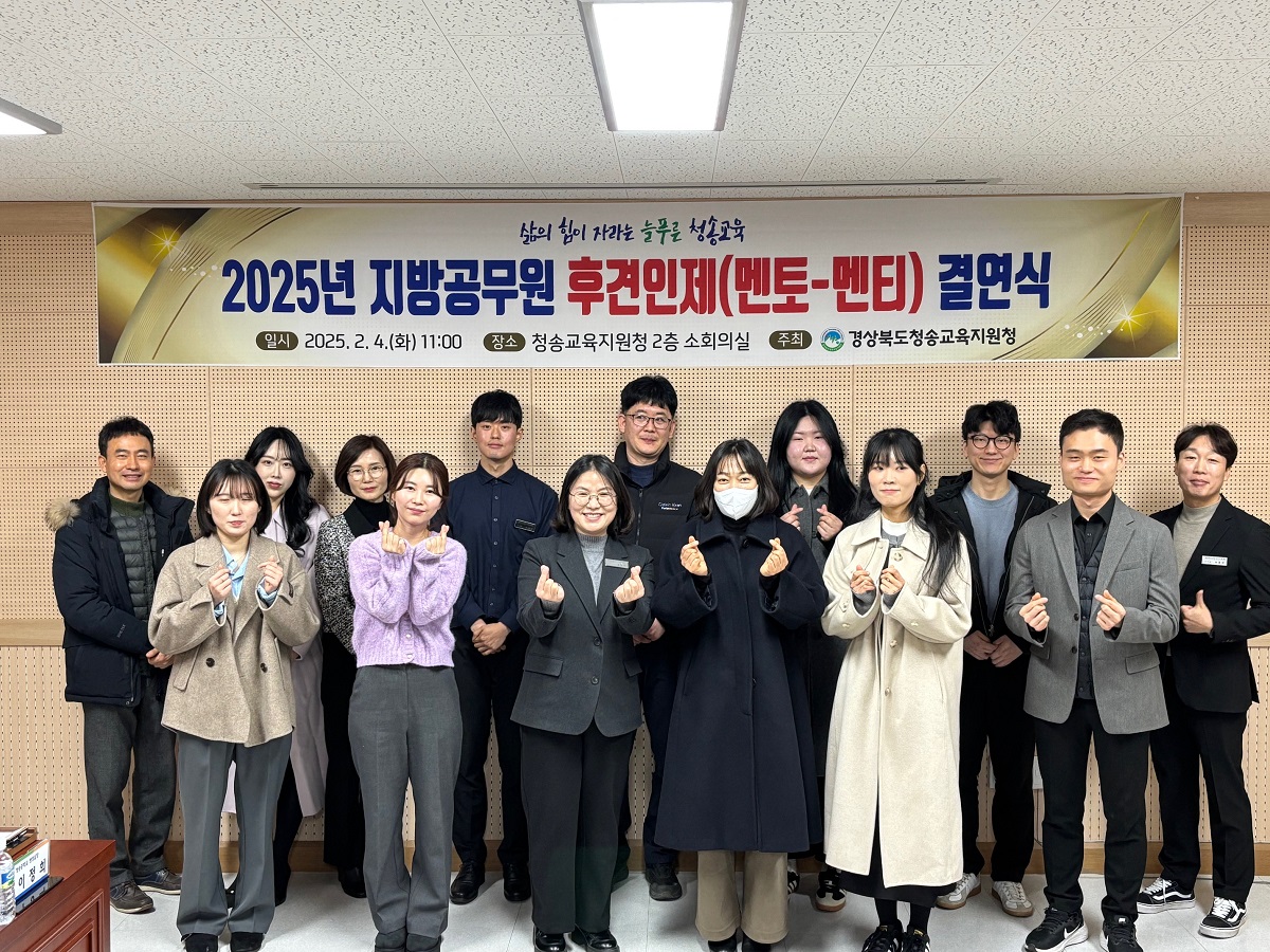 경상북도청송교육지원청(교육장 신덕섭)은 2월 4일(화) 2층 소회의실에서 관내 2025. 1. 1. 자 신규 공무원 8명과 선배 공무원들이 참석한 가운데 지방공무원 후견인제(멘토링) 멘토-멘티 결연식을 가졌다.