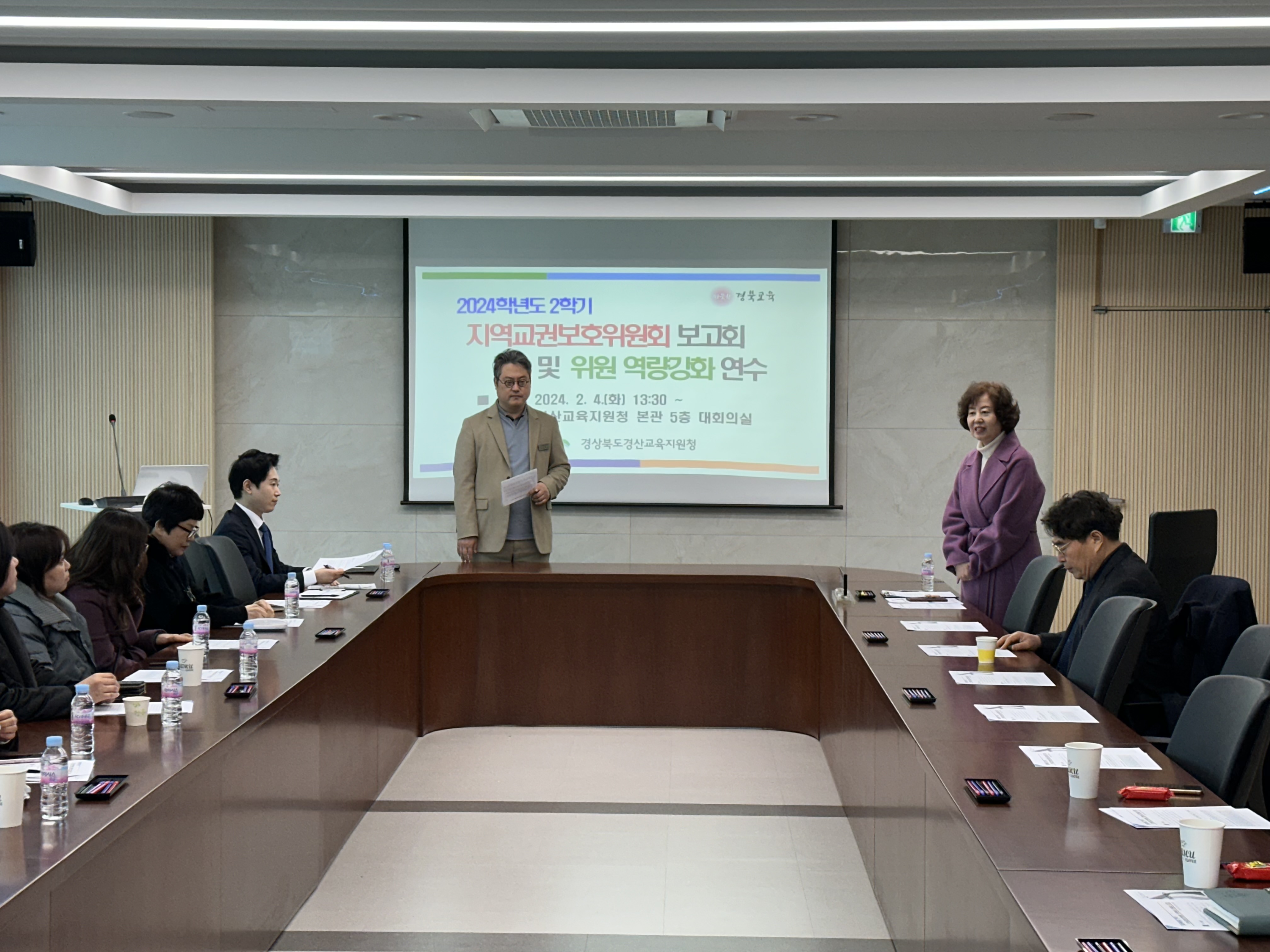 □ 경상북도경산교육지원청(교육장 박경화)은 2025년 2월 4일 경산교육지원청 대회의실에서 "2024년 지역교권보호위원회 소위원회 심의결과 보고회 및 역량강화 연수"를 진행하였다.