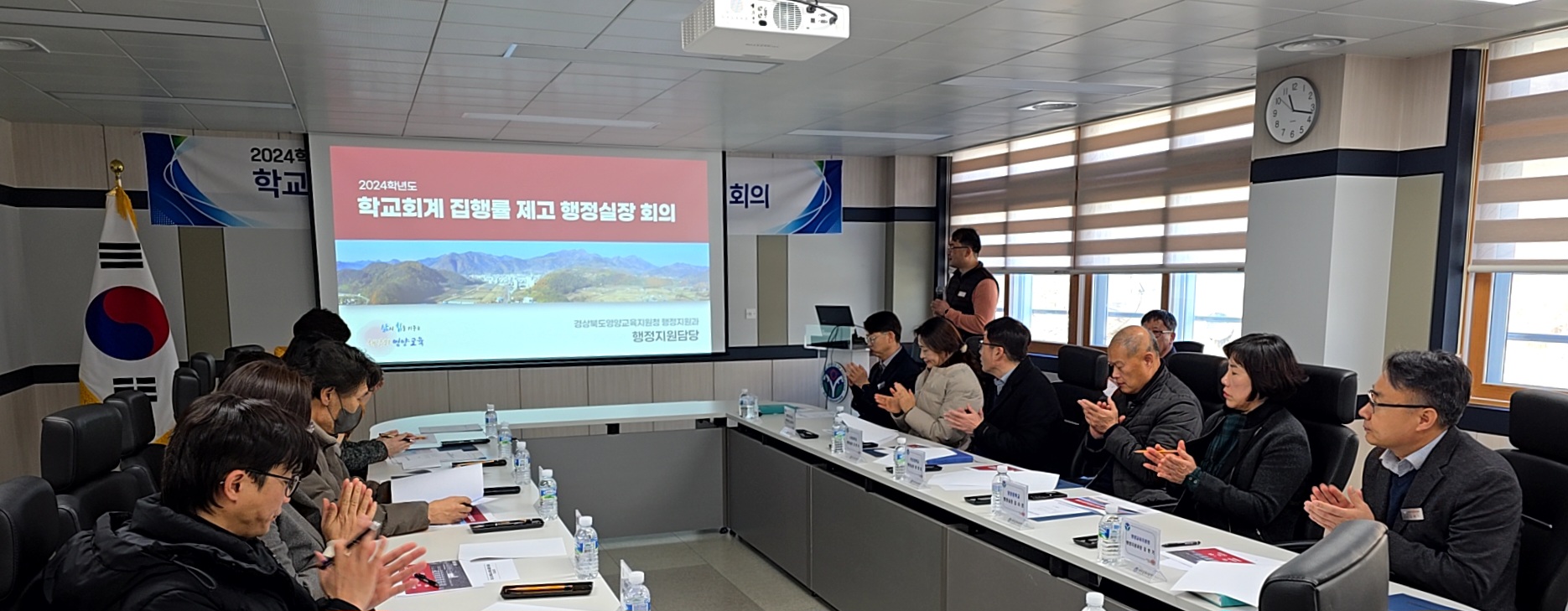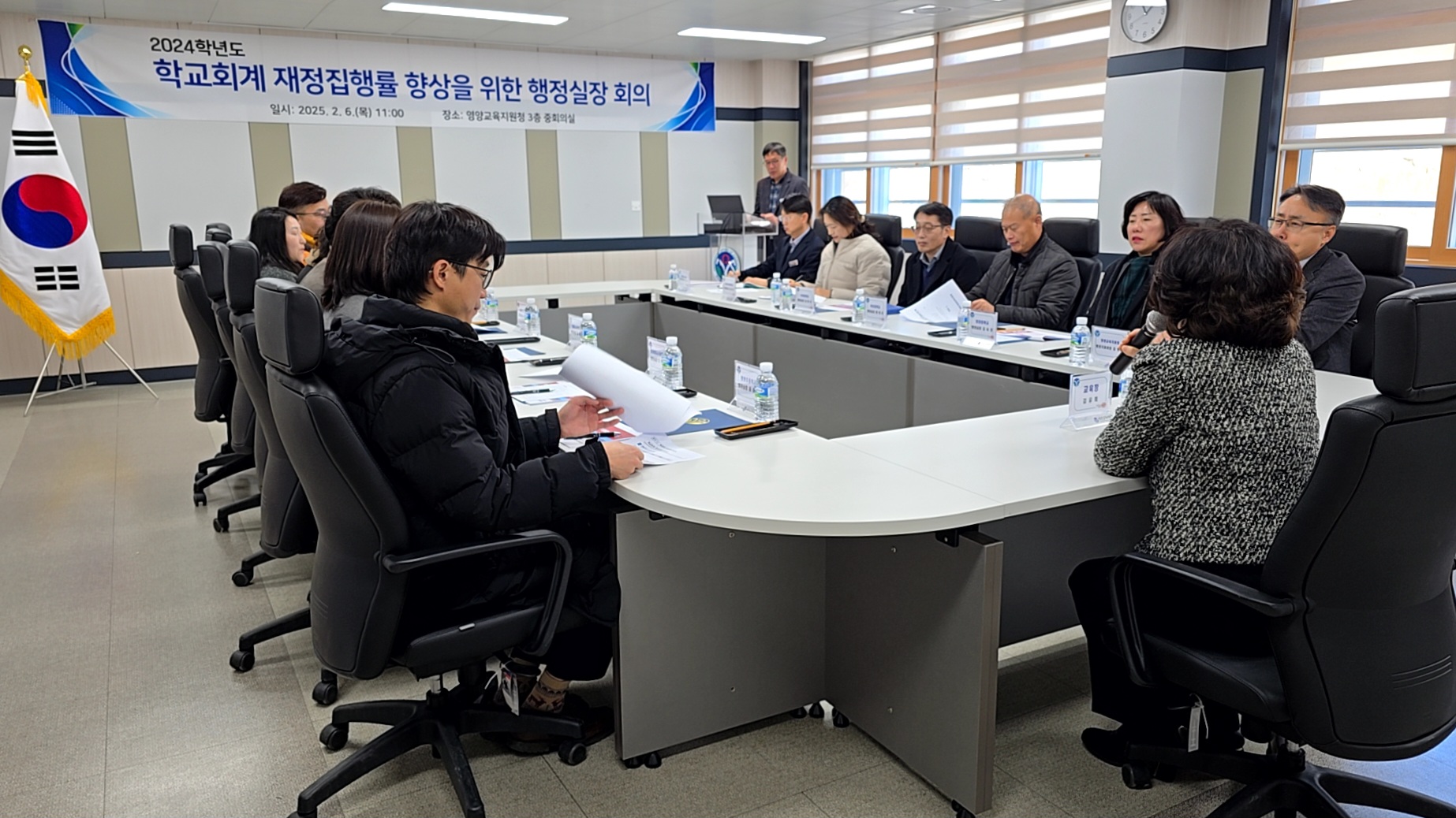 경상북도영양교육지원청(교육장 김유희)은 2월 6일 3층 중회의실에서 관내 초·중학교 행정실장을 대상으로 "2024학년도 학교회계 재정집행률 향상 회의"를 개최했다.