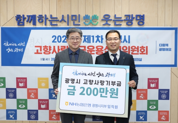 [금요저널] 광명시는 지난 5일 NH농협은행 광명시지부 임직원이 고향사랑기부금 200만원을 기탁했다고 밝혔다.