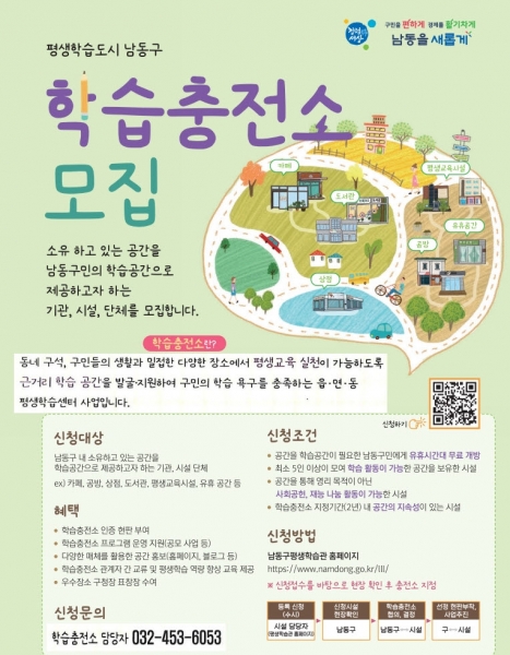 [금요저널] 인천시 남동구는 평생학습 활성화를 위한 ‘학습충전소’를 모집한다고 10일 밝혔다.