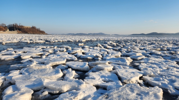 [금요저널] 강화군의 대표 관광명소 동막해변이 한파로 만들어진 유빙으로 장관을 이뤄 관광객들의 발길이 이어지고 있다.