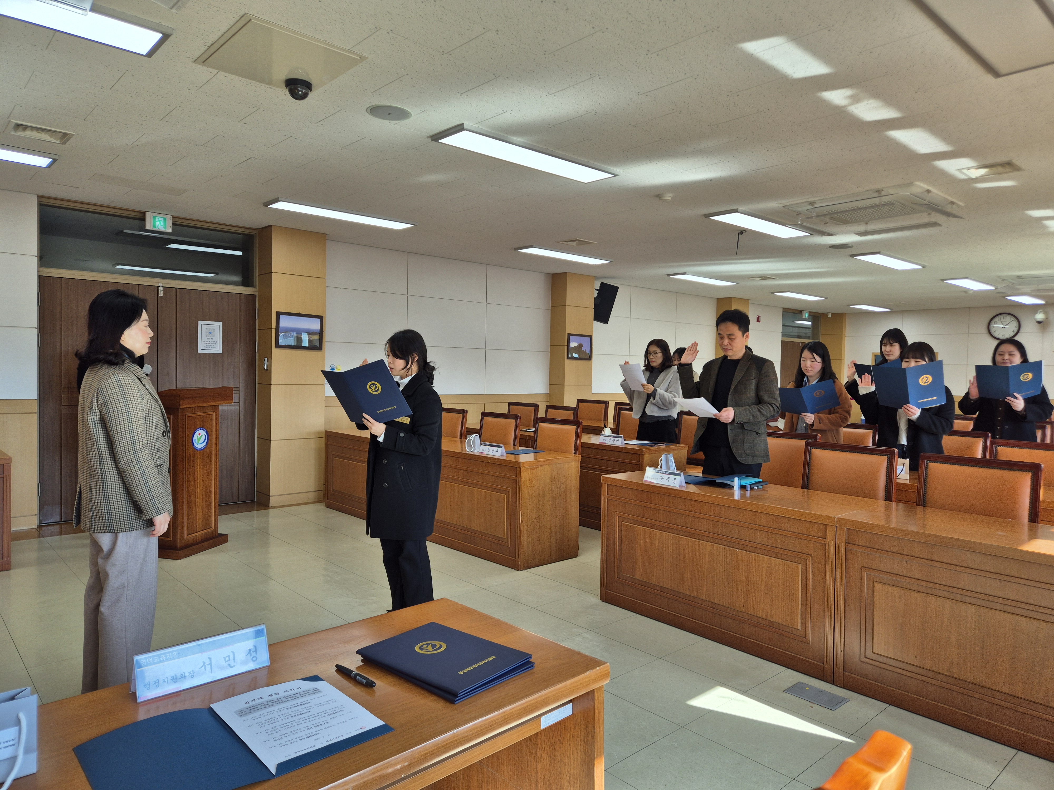 □ 이날 결연식에 참석한 멘토, 멘티들은 직접 선서문을 낭독하며 공직로서의 올바른 자세에 대하여 되새겼으며, 청렴 도장 제작 및 청렴 서약 등 청렴다짐식을 통해 법과 원칙을 준수하고 청렴한 공직사회 실현에 앞장설 것을 다짐하였다.