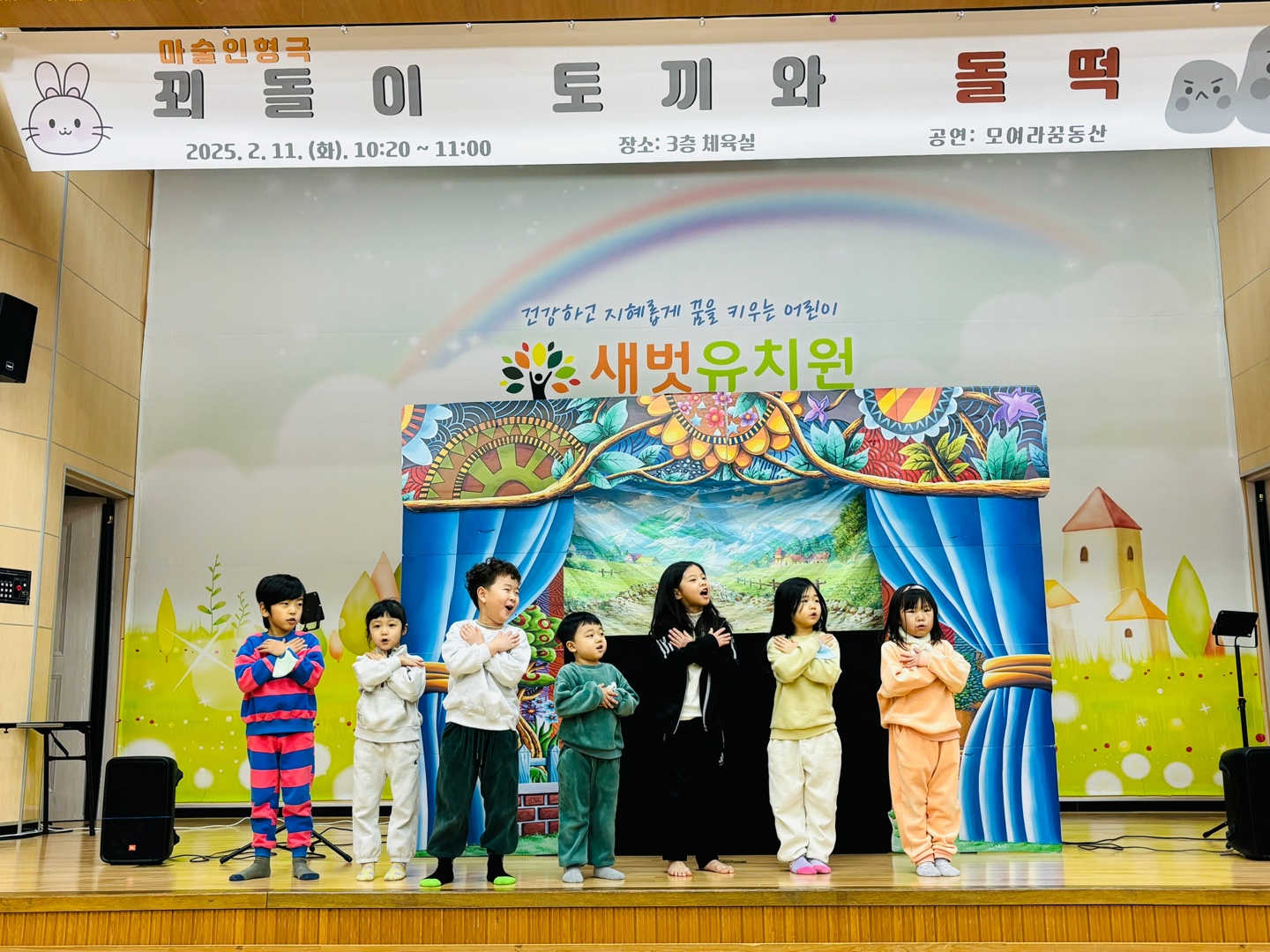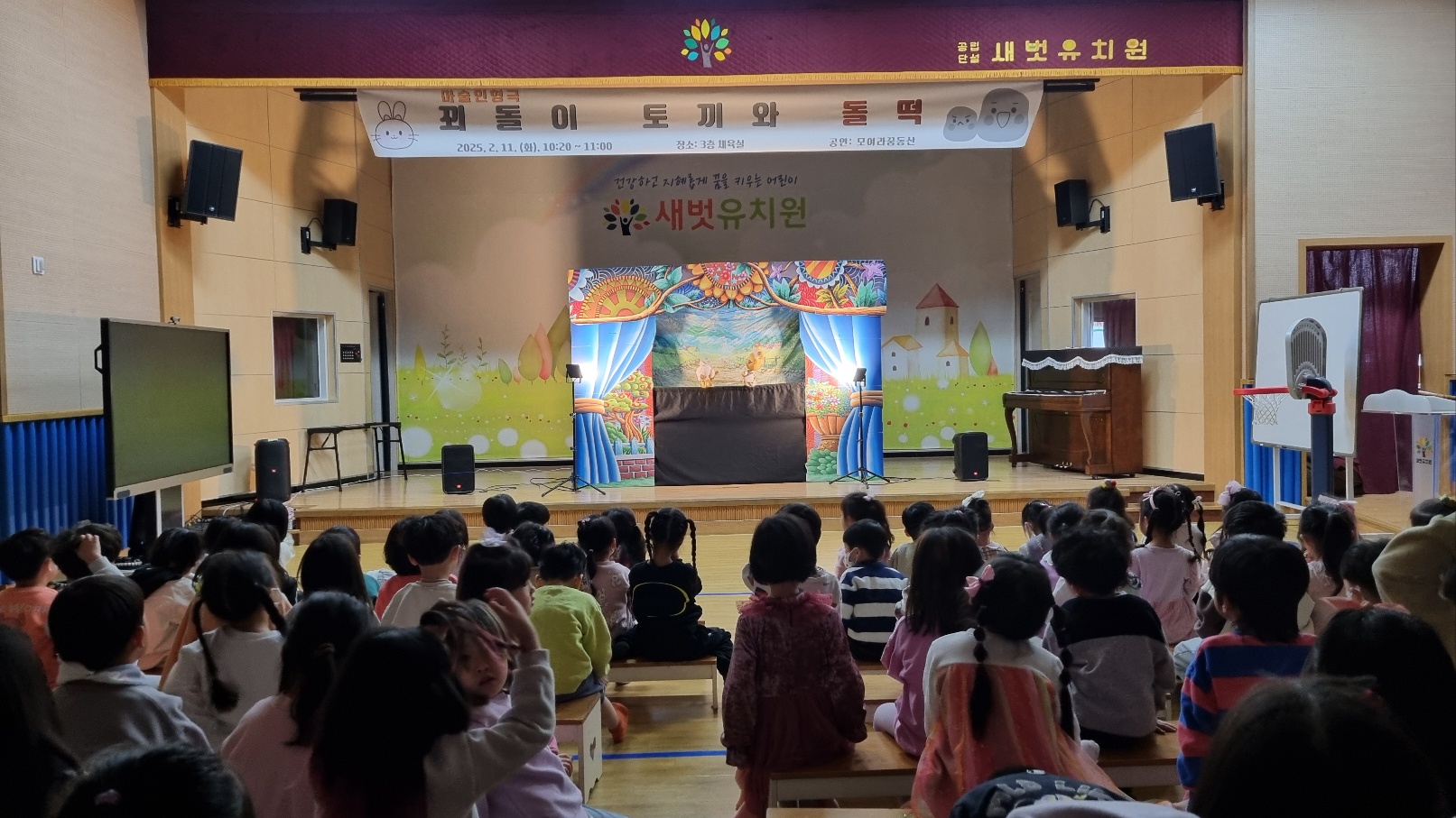 □ 예천군 새벗유치원(원장 우수경)은 2월 11일(화)에 3층 체육실에서 유아 117명을 대상으로 마술 인형극 ‘꾀돌이 토끼와 돌떡’을 관람하는 시간을 가졌다.