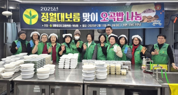 이날 행사에서 새마을회원들은 다양한 나물과 오곡 찰밥을 정성껏 준비해 관내 경로당 2곳과 취약계층 20가구에 전달했다.