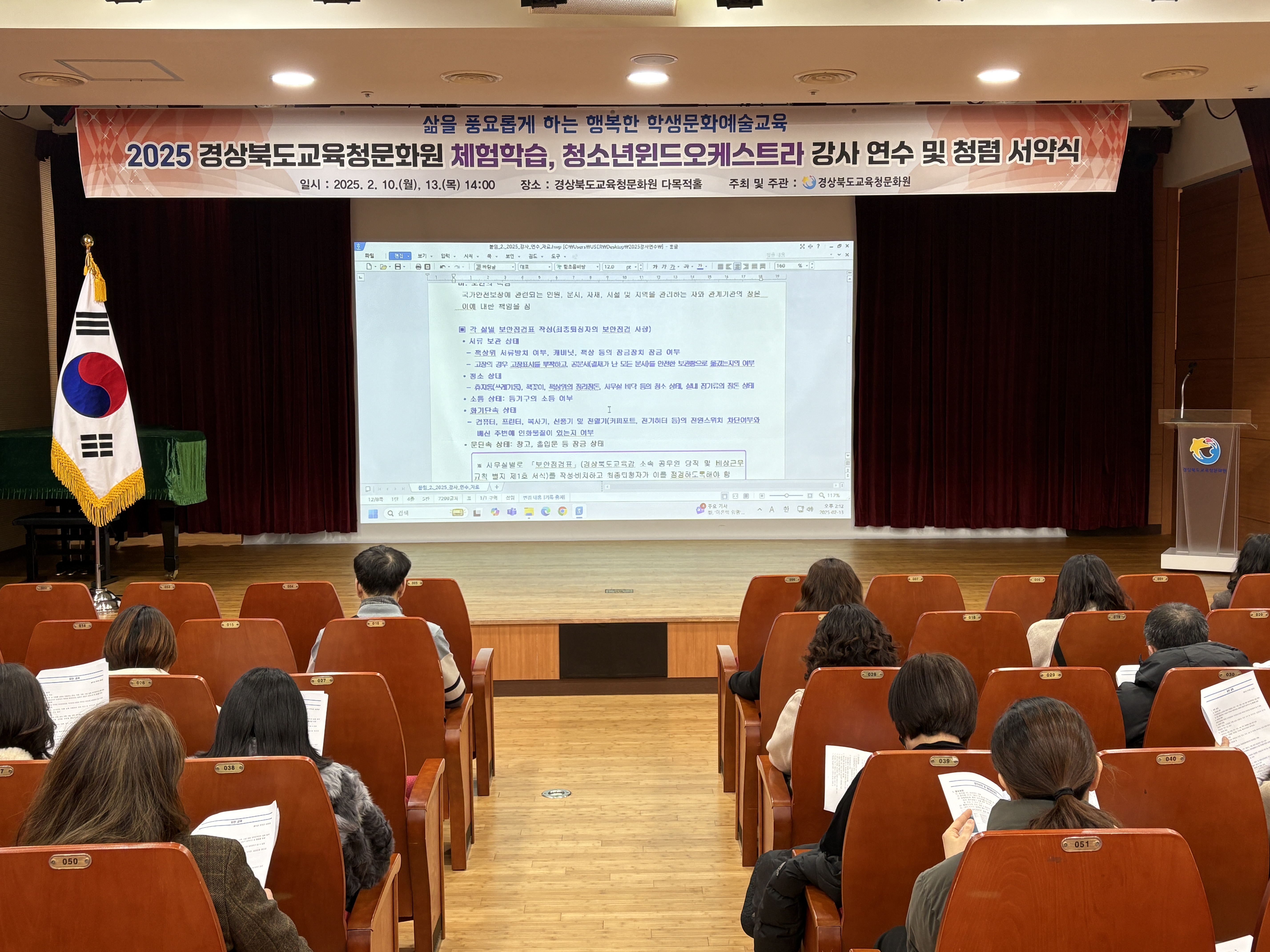 경상북도교육청문화원(원장 박민아)은 2025년 2월 13일(목) 2025학년도 문화예술 체험강사 25명을 대상으로 역량강화 연수를 개최했다.