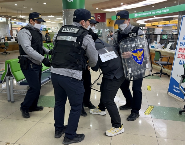 이번 훈련은 민원인의 폭언·폭행 등 민원 처리 중 발생할 수 있는 특이민원에 대비해 민원 담당 공무원을 보호하고 현장 대응능력을 강화하기 위해 마련됐다.