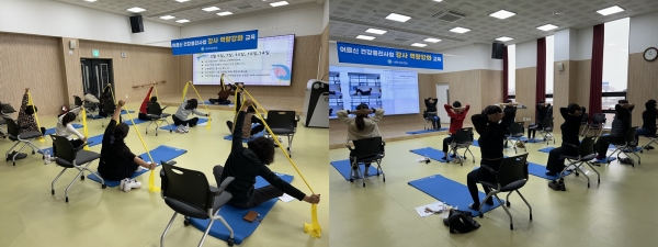 이번 교육은 베리어프리 무브먼트 랩 대표 임윤경 전문 강사가 진행했으며 어르신들의 건강관리에 필수적인 스트레칭과 근력운동법을 중점적으로 다뤘다.
