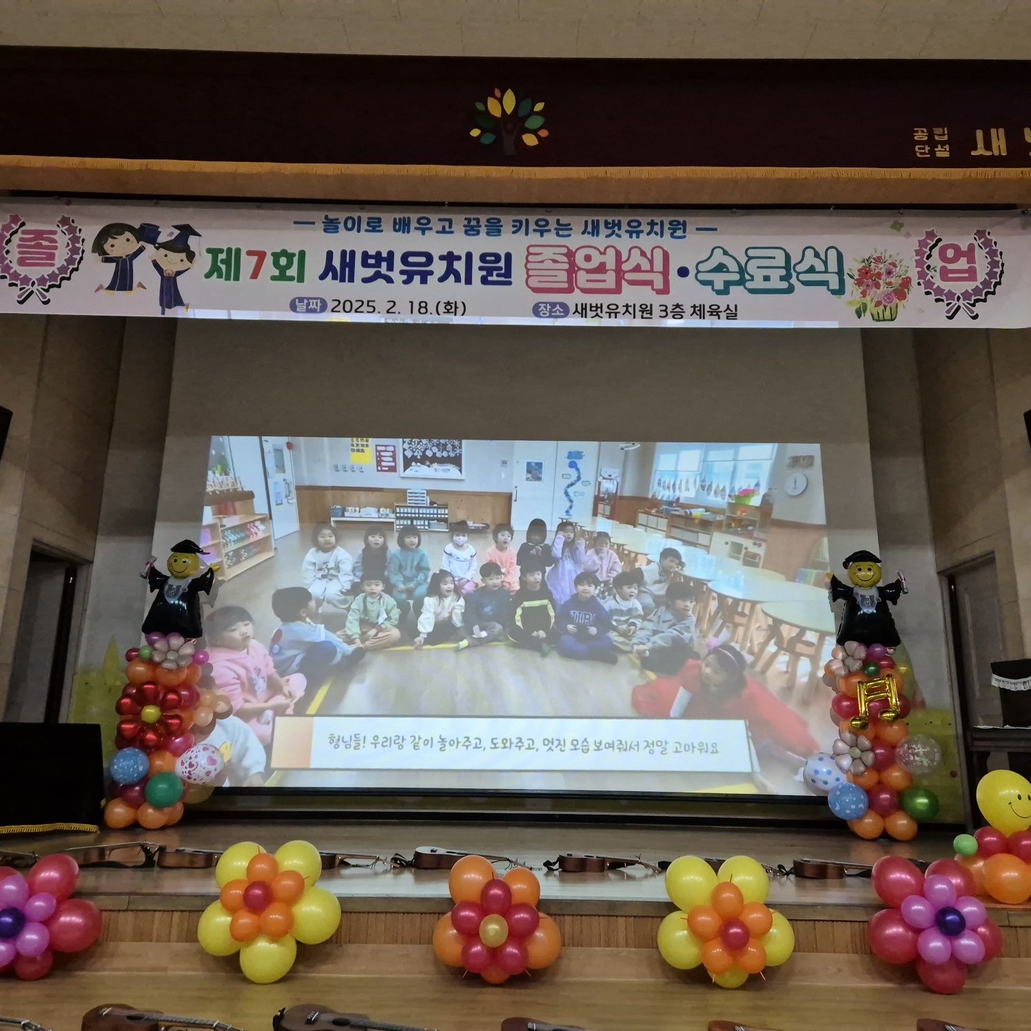 □ 새벗유치원(원장 우수경)은 2025년 2월 18일(화) 3층 체육실에서 졸업생 43명과 수료생 74명을 대상으로 제7회 졸업식 및 수료식을 진행했다.