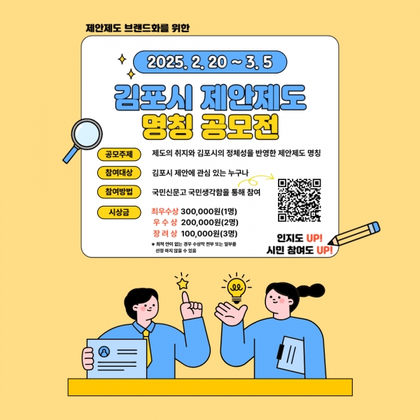[금요저널] 김포시는 제안제도의 취지와 지역 정체성을 반영한 새로운 명칭을 찾기 위해 2월 20일부터 3월 5일까지 제안제도 명칭 공모전을 진행한다.