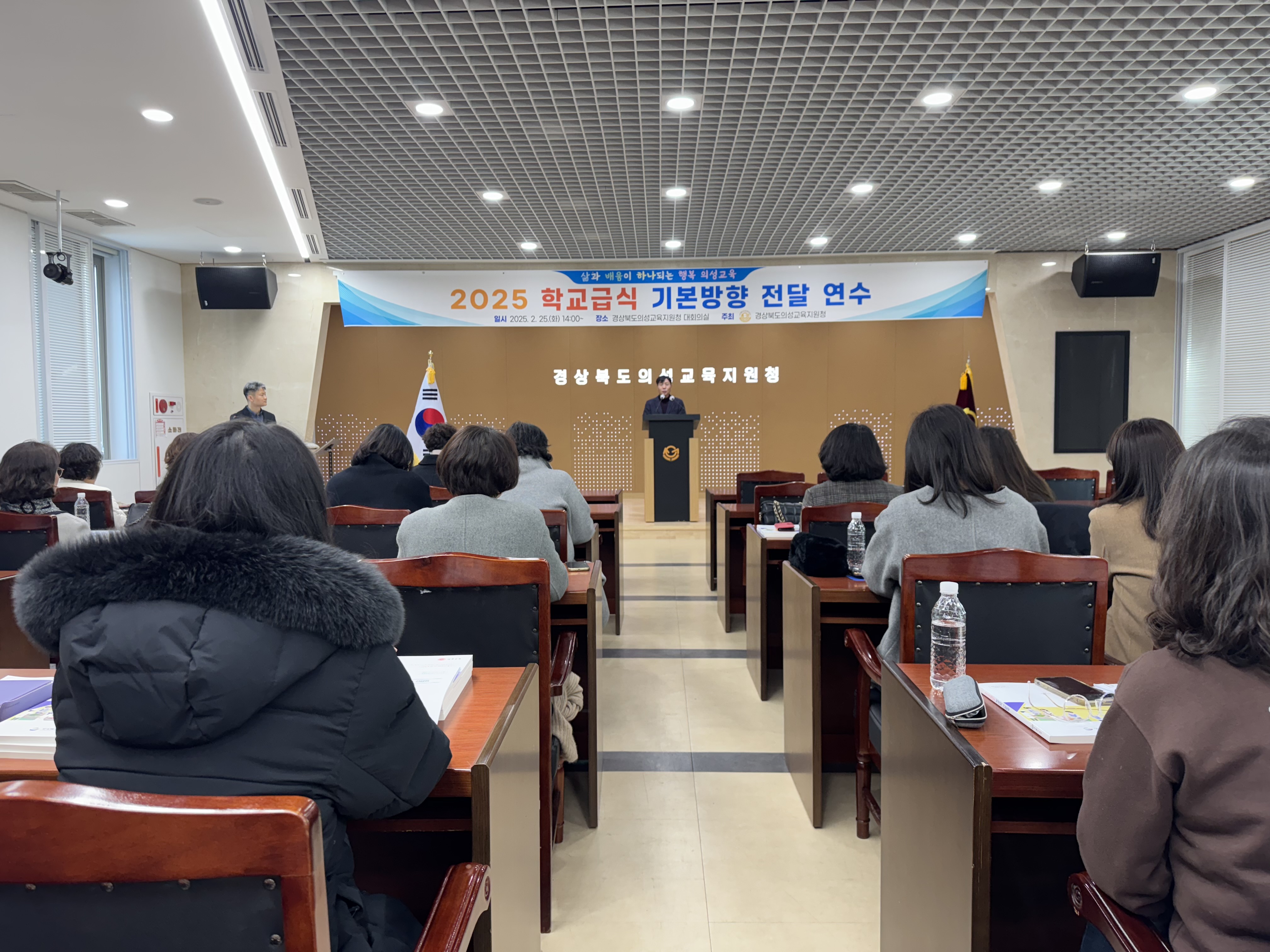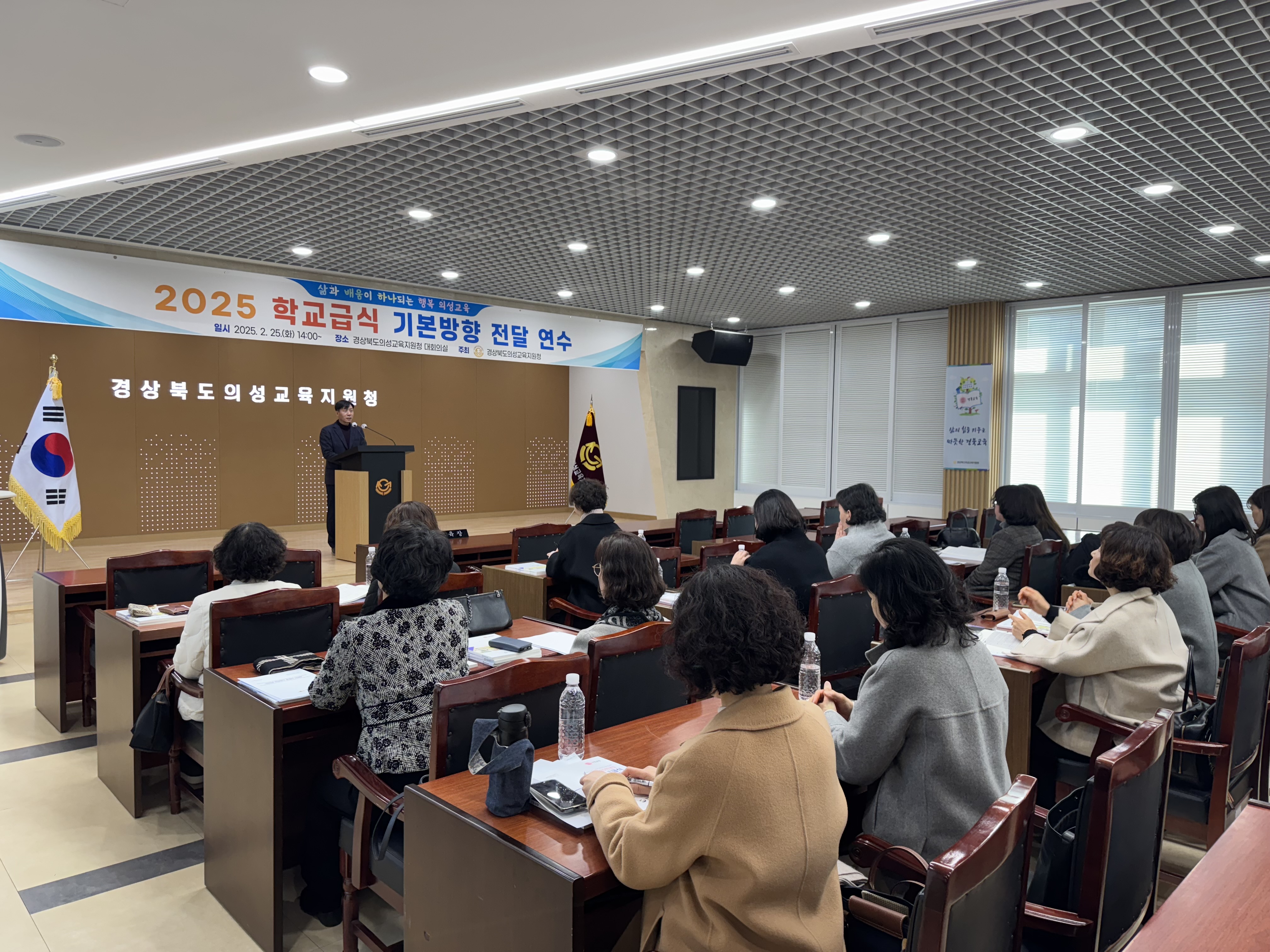 경상북도의성교육지원청(교육장 이우식)은 2월 25일 3층 대회의실에서 초·중·고등학교 영양(교)사 22명을 대상으로 2025학년도 학교급식 기본방향 전달 회의 및 청렴 연수를 실시했다.