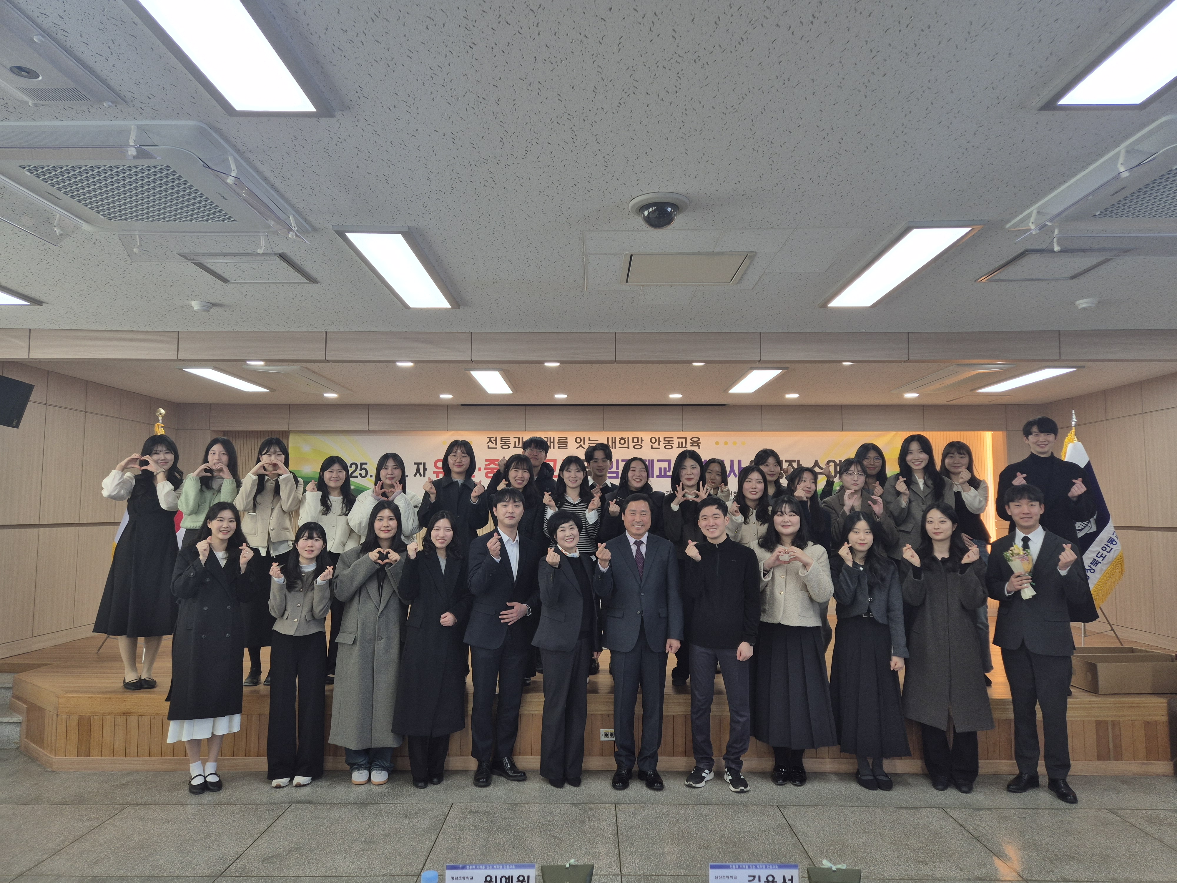 경상북도 안동교육지원청(교육장 [안중환])은 2025년 2월 25일(화) 3층 대회의실에서 유·초·중등 신규교사 34명과 임기제 교육연구사 6명에게 임명장을 수여하는 뜻깊은 행사를 개최했다.