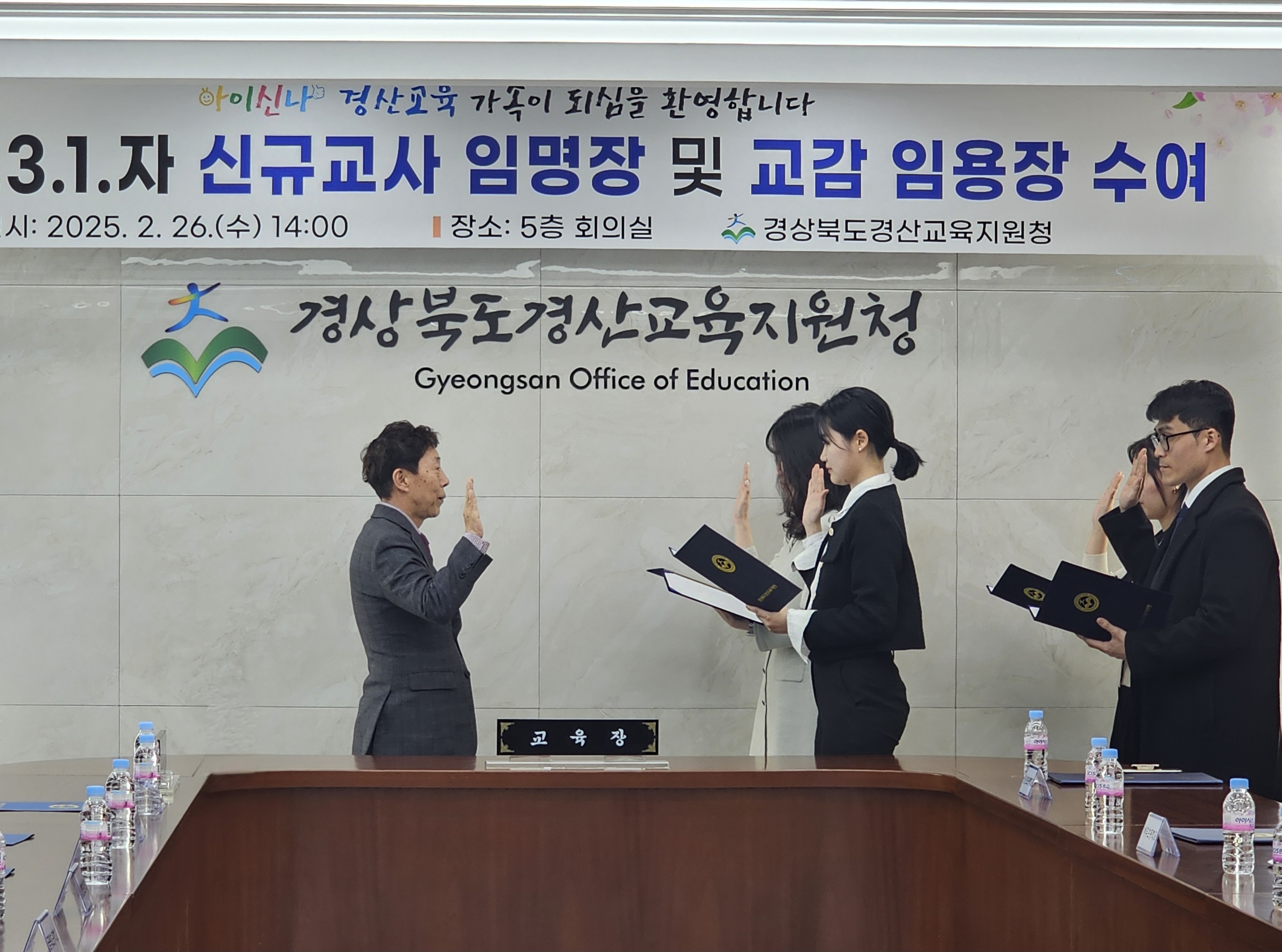 □ 경상북도경산교육지원청(교육장 박경화)은 2025년 2월 26일 교육지원청 5층 회의실에서 2025년 3월 1일자로 임용되는 관리직 교육공무원 임용장과 신규교사 임명장을 수여했다.
