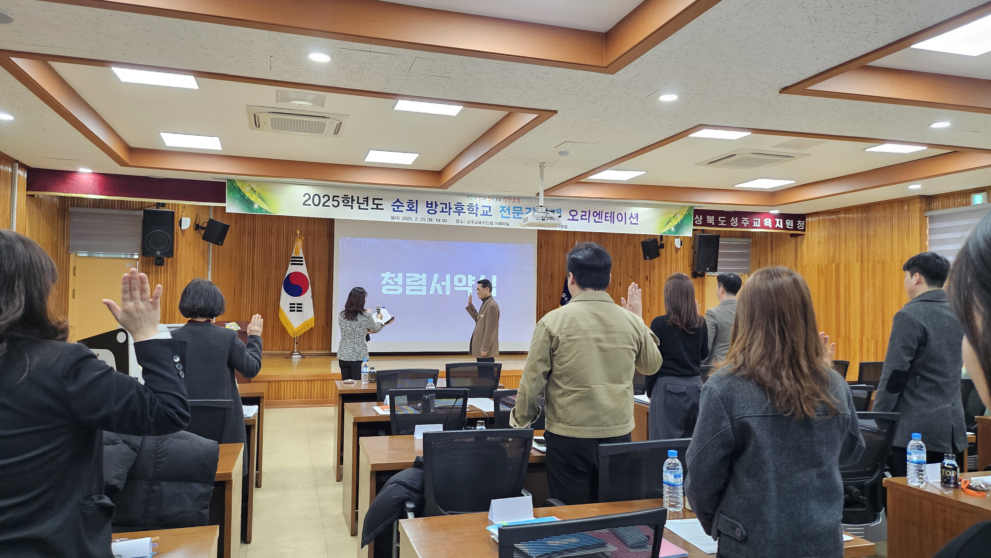 □ 경상북도성주교육지원청(교육장 정수권)은 2025년 2월 25일(화) 14시 성주교육지원청 3층 대회의실에서 2025년 농산어촌 지역 순회 방과후학교 전문 강사 오리엔테이션 및 청렴서약식을 실시하였다.