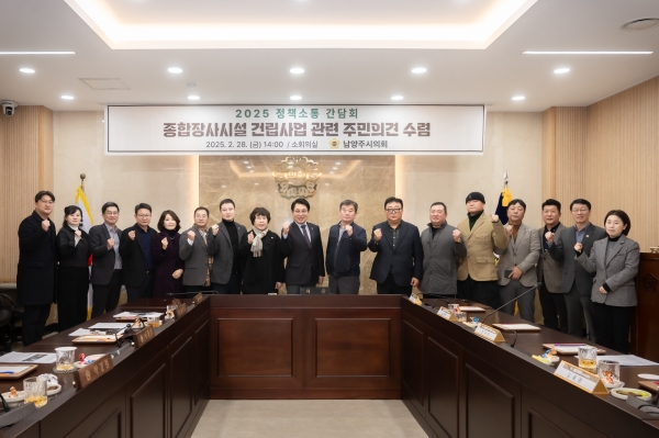 [금요저널] 남양주시의회는 28일 오후 시의회 소회의실에서 ‘공동형 종합장사시설 건립사업’에 따른 주민 의견 수렴을 위한 정책소통 간담회를 개최했다.