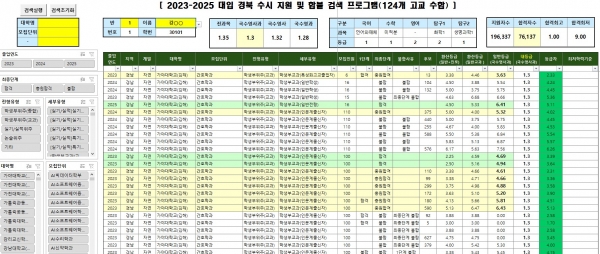 간단 버전은 2023학년도부터 2025학년도까지 입학 결과 데이터를 포함하며 3개 학년도 대입 결과에 대한 상세한 검색 기능을 제공한다.