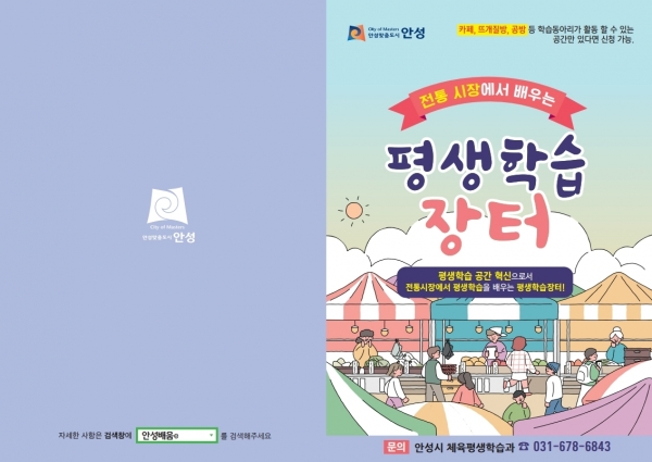 평생학습장터는 안성시 전통시장 내 상인들의 생활·유휴 공간을 평생학습 공간으로 지정해 운영하는 사업으로 시민들이 전통시장에서 장을 보면서 동시에 평생학습에 참여할 수 있는 기회를 제공하고 지역 상권 활성화와 평생학습의 접근성을 높이는 것을 목표로 추진하는 사업이다.