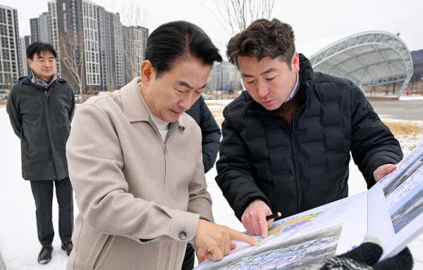 이번 현장 점검은 복합문화융합단지 도시개발사업의 부지조성공사 완공에 따른 시설물 점검과, 올해 착공을 앞둔 디자인도서관 및 아이돌봄시설 클러스터의 진행 상황을 확인하기 위해 마련했다.