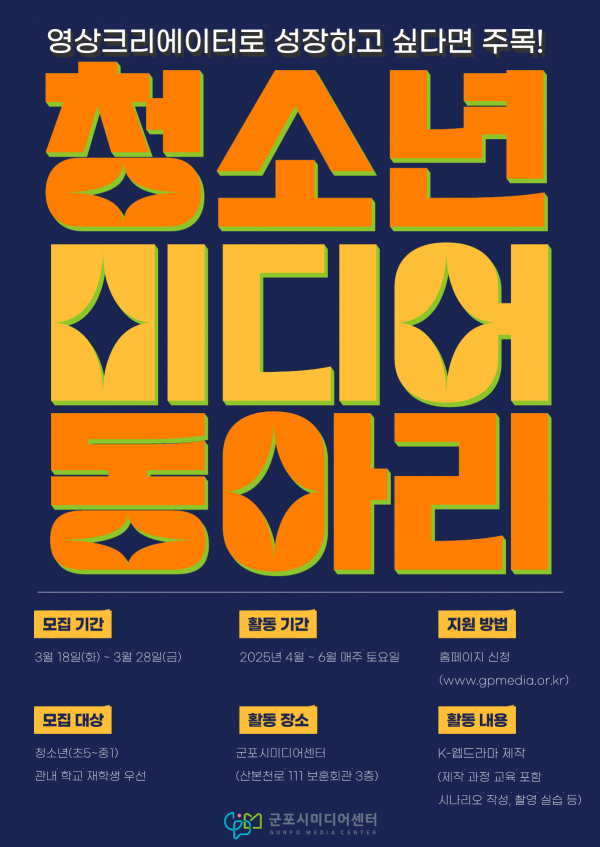 [금요저널] 군포시미디어센터가 2025년 상반기 ‘청소년 미디어 동아리’ 참가자를 모집한다.