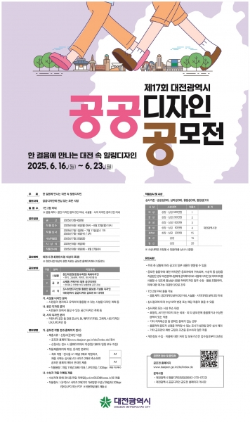 [금요저널] 대전시는 시민이 직접 참여하는 공공디자인을 통해 더욱 품격 있는 도시로 나아가고자 ‘제17회 공공디자인 공모전’을 개최한다.