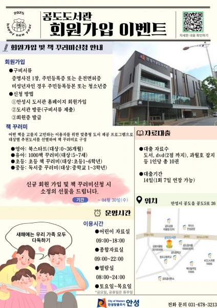 [금요저널] 안성시 공도도서관은 3월 15일부터 4월 30일까지 시민들의 독서 활동을 장려하고 도서관 이용을 활성화하기 위한 홍보 주간을 운영한다고 발표했다.