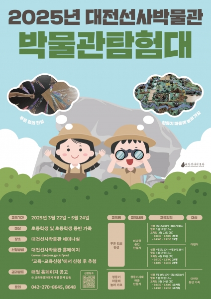 [금요저널] 대전선사박물관은 2025년 상반기 새 학기를 맞아 3월부터 5월까지 매달 2회씩 총 6회에 걸쳐 박물관 세미나실에서 박물관탐험대를 운영한다.