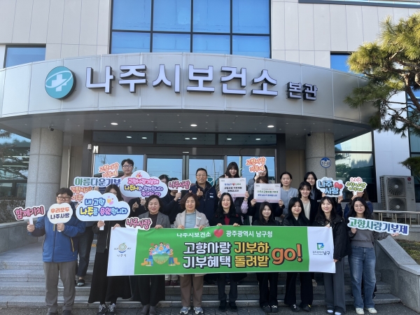 송내옥 나주시 건강증진과장은 “나주시와 광주 남구 간 고향사랑기부제가 정착될 수 있도록 자발적으로 참여해 준 직원들께 감사하다”며 “앞으로도 지자체 간 상생 협력을 위해 지속적으로 노력하겠다”고 전했다.