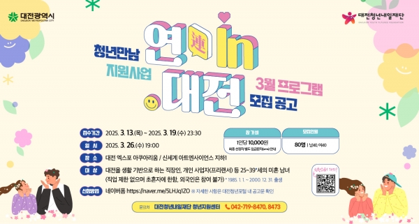 대전에 생활기반을 둔 직장인, 개인사업자 등 25~39세의 미혼청년이라면 누구나 참여할 수 있다.
