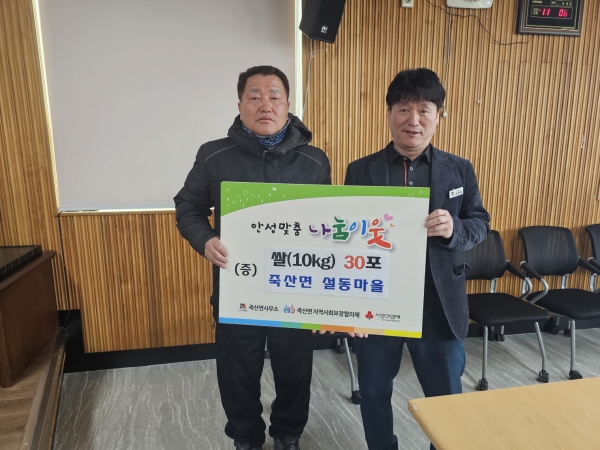 죽산면 관계자는 “매년 잊지 않고 지역사회의 어려운 이웃을 위해 기부해주시는 설동마을 주민들께 감사드린다”며 “전달해주신 따뜻한 마음을 소외된 이웃들에게 잘 전달하겠다”고 밝혔다.