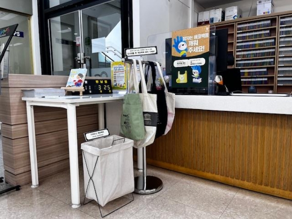 에코백 공유대는 도서관 자료실 안내 데스크 옆에 마련되며 시민들이 자율적으로 참여하고 순환할 수 있도록 운영된다.