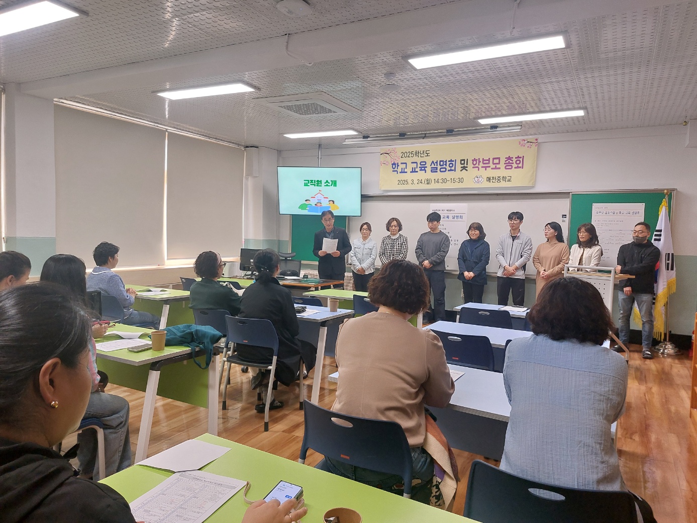 청도 매전중학교(교장 김기빈)는 3월 24일(월), 2025학년도 1학기 학교교육설명회 및 학부모 공개수업을 성황리에 운영하였다.