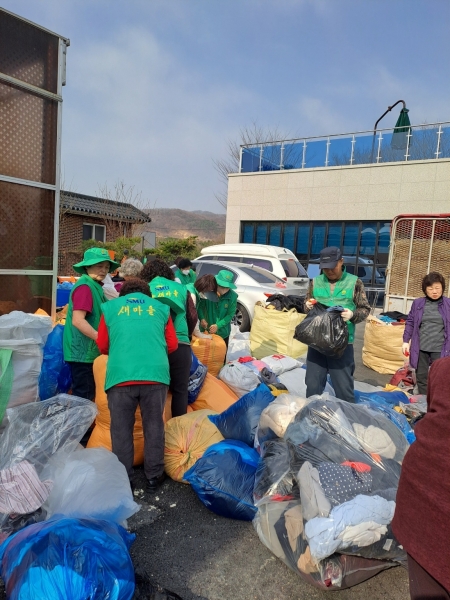 [금요저널] 안성시 삼죽면 새마을부녀회는 3월 24일 회원 20여명과 함께 삼죽면 행정복지센터 주차장에서 헌 옷 수거사업을 추진했다.