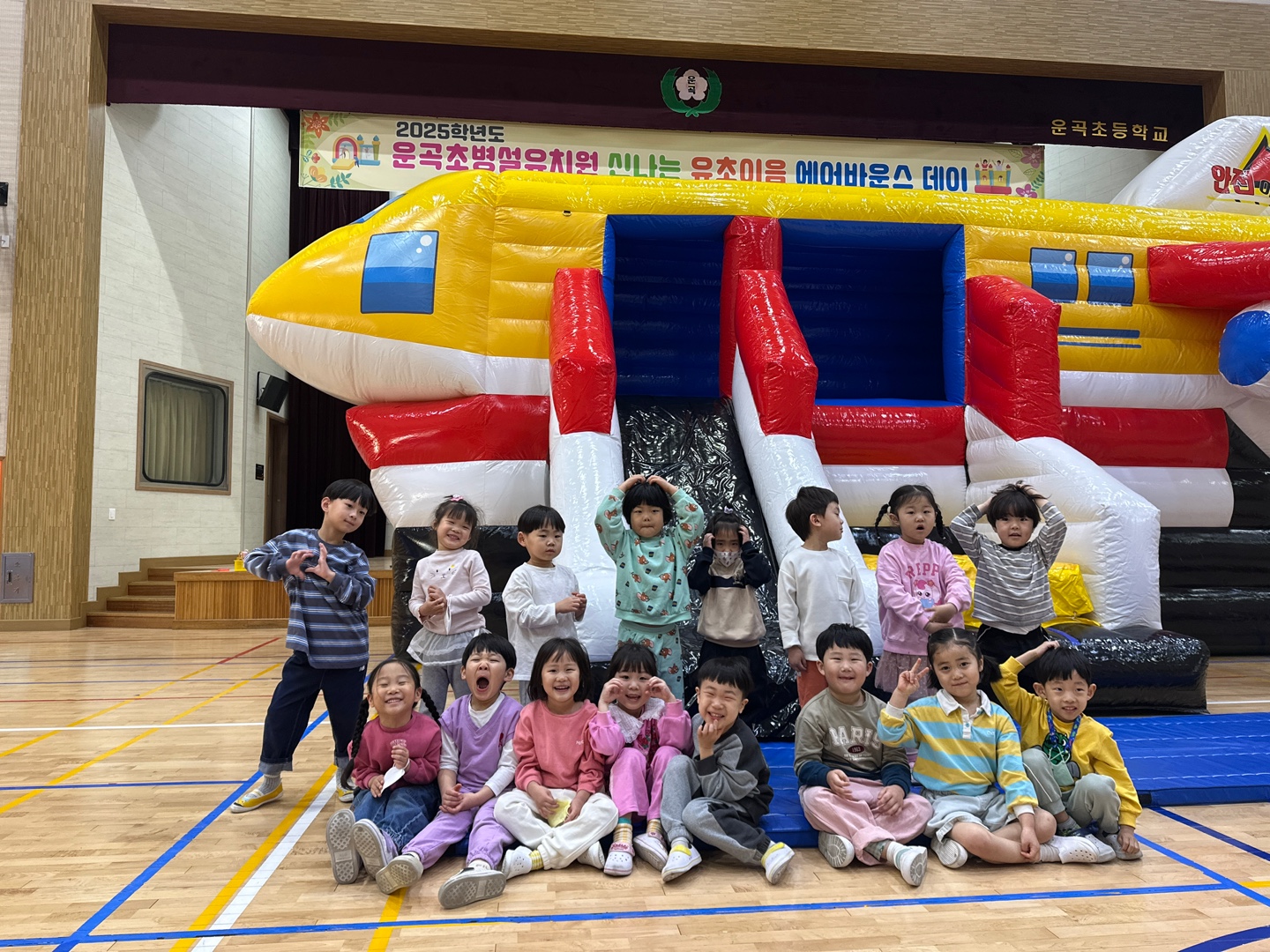 □ 운곡초등학교병설유치원(원장 이경화)은 25일 안전을 최우선으로 고려한 신나는 유․초이음 에어바운스 데이를 실시하였다.