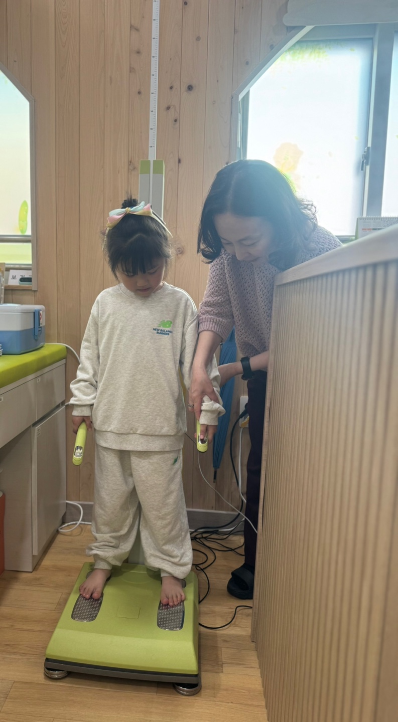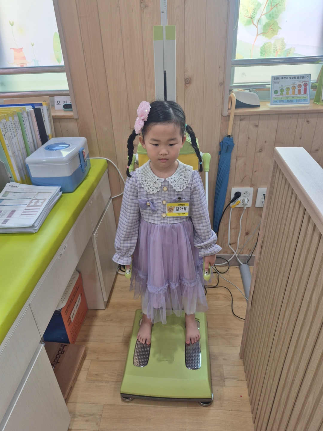 □ 꽃잎반 김ㅇㅇ은 “선생님~ 저번에 이거 해봤어요. 너무 재미 있어요”라고 하였고, 열매반 박ㅇㅇ은 “보건선생님~ 저 키 많이 컸어요? 몸무게는 조금 높아요 왜냐하면 제가 많이 먹었거든요”라고 하였다. 아직 인바디 기계가 익숙하지 않은 새싹반 김ㅇㅇ은 “선생님 우리 연습해봤지요?