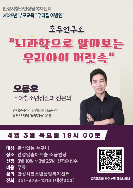 안성시청소년상담복지센터, 2025년 부모교육 “뇌과학으로 알아보는 우리아이 머릿속” 실시